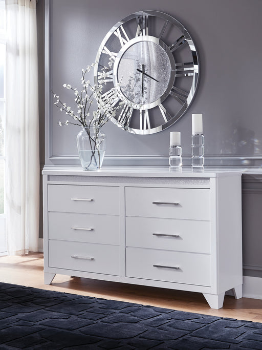 This dresser is a showstopper, bringing a touch of modern glamour to your sanctuary. A sleek white finish and inset glitter accents create a sophis...