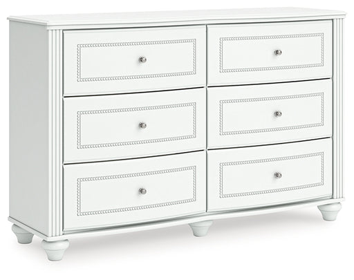 Fit for a princess. This dresser’s crisp matte white finish pairs with charming elements like bun feet, crystal knobs and ornate beading—the perfec...