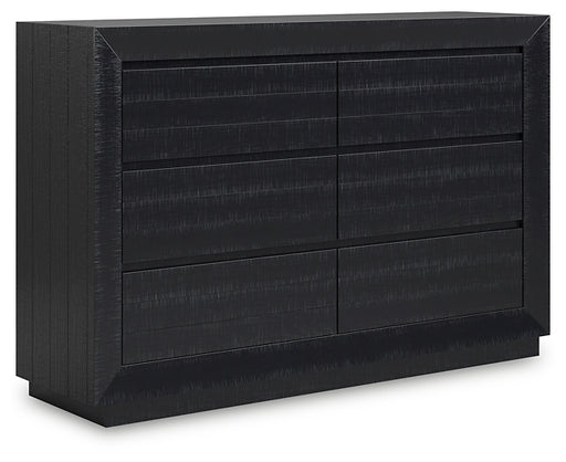 Alluring smoky gray hues create an ambiance that just feels right. This 6-drawer dresser has a charming wood-like appeal enriched by a two-tone, te...