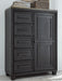 | Details | Made with hardwood solids, select oak veneers and engineered wood, Two-tone finish (brushed black and dusty grayish brown wood tone), Sleek drawer pulls with black finish, 5 soft-close, smooth-gliding drawers with fully finished interiors and dovetail construction (top drawers felt lined), 3 pull-out trays (felt lined) and 2 adjustable shelves behind door | |