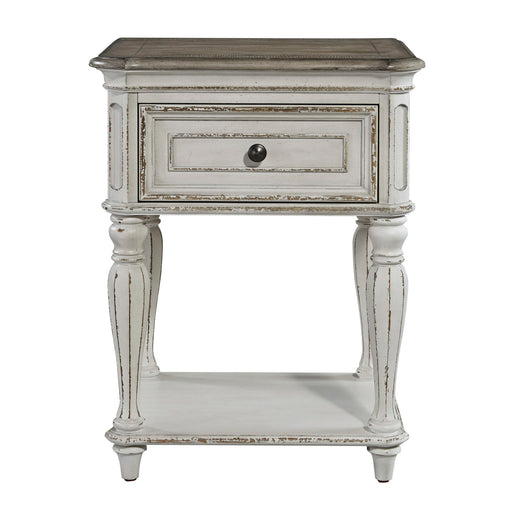 Accent your bedroom with the artistic style of the Heather 1-Drawer Nightstand with USB. Made with solid pine wood in an aged white finish, the sop...