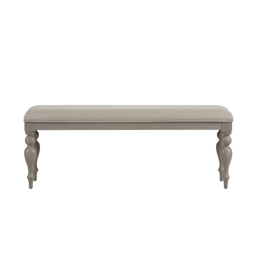Sit in comfort and style with the Summer House bench. Crafted of poplar and pine solids, this piece features a dove grey finish, grey linen upholst...