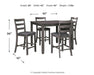 | Details | Includes counter height table and 4 barstools, Made of wood, veneer and engineered wood, Medium charcoal gray finish, Ladderback barstools, Cushioned seats covered in textured gray polyester upholstery, Table with tapered leg design, Assembly required | |