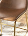 Details Made with metal frame, engineered wood and foam cushion, Frame with durable goldtone powder coat finish, Faux leather upholstery, Contoured bucket seat
