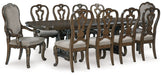 | Details | D947D5: Made with hardwood solids, oak and ash swirl veneers, MDF substrates and cast resin components, Dark brown finish, Double pedestal base, Removable center leaf, Table extends by pulling both ends and dropping in leaf, Shaped metal stretcher bar, Dining chairs sold separately, Seats up to 8, Assembly required, D947-01: Made with wood and cast resin, Dark brown finish, Foam cushioned seat with polyester upholstery, Ornate cabriole legs, Assembly required, D947-01A: Made with wood and cast resin, Dark brown finish, Foam cushioned seat and back with polyester upholstery, Ornate arms and cabriole legs, Assembly required, | |