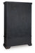 Details Made with hardwood solids, mango wood veneer and MDF substrate, Two-tone finish (black and brown), Glass-front doors, Door and drawer pulls with dark pewter-tone finish, 2 doors with glass fronts, 3 fixed shelves, 2 drawers with felt lining, 3 reversible wine shelves, each holds 3 bottles, Assembly required