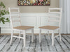 | Details | Made with solid wood frame, Seat with light butcher block oak veneer, Frame with antiqued white finish, Ladderback design, Contoured seat for added comfort, Assembly required | |