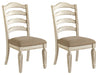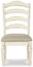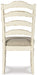 | Details | Made with wood and engineered wood, Distressed, chipped white finish, Ladderback styling, Polyester upholstery over foam cushioned seat, Assembly required | |