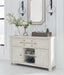 | Details | Made with rubberwood solids, ash veneer and MDF substrates, Antiqued white finish with wood grain texture, 4 cabinets; lower cabinets each have single adjustable shelf, 2 smooth-gliding drawers, Satin nickel-tone hardware, Top surface and cabinet doors with planked effect | |