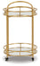 | Details | Made with metal, Goldtone finish, Mirrored glass shelves, 2 shelves, Locking casters for mobility, Assembly required | |