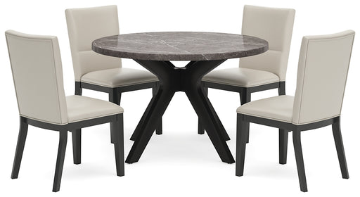 Embrace the feel of casual contemporary design when you sit down to this dining package. Matte black frames and a contrasting faux marble tabletop ...