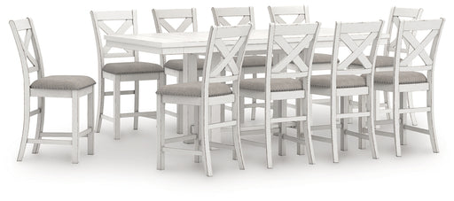 Cool and on-trend. This counter-height dining package sports an antiqued gray finish and gray textural fabric for a contemporary-yet-casual feel. T...