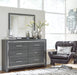 | Details | Made of engineered wood (MDF/particleboard) and decorative laminate, Gray finish with replicated wood grain, Faceted chrome-tone pulls and accents, 6 smooth-operating drawers, Drawers lined with faux linen laminate, Mirror attaches to back of dresser, Includes tipover restraint device, Assembly required | |