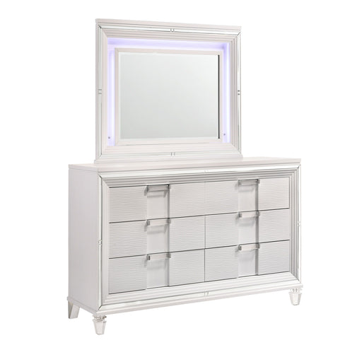 Contemporary style is shaping up beautifully. Designer elements are evident from every angle in this dresser and mirror. Quality crafted with dovet...