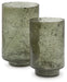 | Details | Set of 2, Made with sanded glass, Green finish, Each holds a 3” pillar candle (candles not included) | |