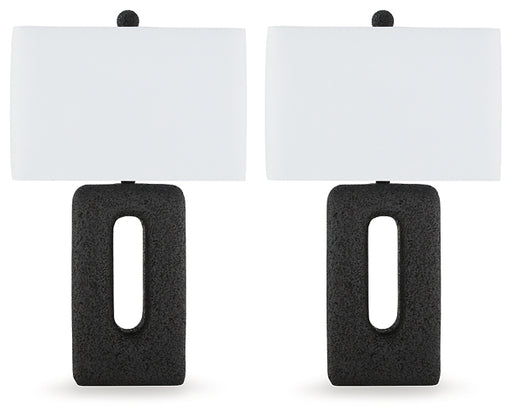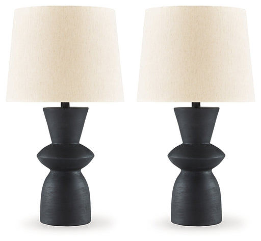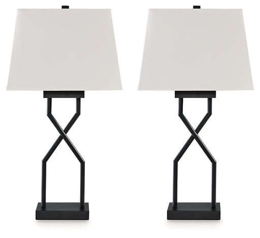 Turn on the brilliance and modern flair of this table lamp set. The angular silhouette and intriguing base in distressed black are the definition o...