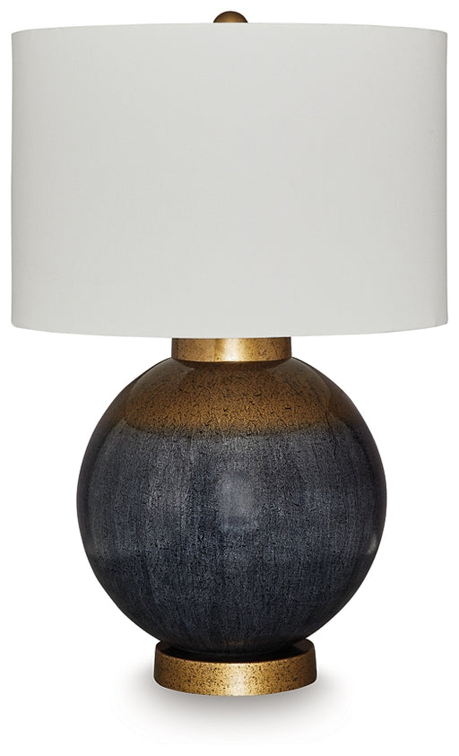 This accent lamp distinguishes itself in any setting. Its dark glass body is round and distinct, providing a mood of rustic romance.Specifications ...