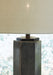 Details Made of metal with drum hardback fabric shade, Antiqued pewter-tone and black finish, 3-way switch, 1 E26 socket, type A bulb (not included); 100 watts max or LED equivalent; UL Listed, Assembly required