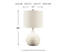 Details Made of ceramic with drum hardback fabric shade, Transparent white glaze finish, On/off switch, 1 E26 socket; type A bulb recommended (not included); 60 watts max or LED equivalent; UL listed, Assembly required