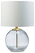 | Details | Made of glass and metal with drum hardback fabric shade, Clear and brass-tone finish, 3-way switch, 1 E26 socket, type A bulb recommended (not included); 100 watts max or LED equivalent; UL Listed, Assembly required | |