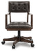 | Details | Made with solid wood frame, Dark brown wood-tone finish, Foam cushioned seat and backrest with faux leather upholstery, Adjustable height, Casters for easy mobility, Assembly required | |