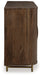 | Details | Made with solid mango wood, Warm brown finish, Wood door pulls, Door fronts with fluted pattern, Curved side detail, Metal base with goldtone finish, 4 doors with soft-close hinges; 2 shelves, Openings in back for electronics, Assembly required | |