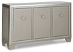 | Details | Made with engineered wood and textured laminate, Silvertone metallic finish, Mirrored top, Faux crystal and chrome-tone finished door pulls, Beveled mirror accents, Bead framed doors, 2 adjustable shelves, Assembly required | |