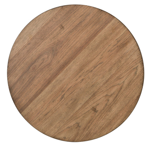 Elevate your space with the Modern Farmhouse drum end table. Crafted of poplar solids with knotty white oak veneers, this piece features heavy dist...