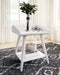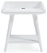 | Details | Made of wood and engineered wood, White finish, Gallery rail top, Fixed shelf, 2 USB charging ports; power cord included, Assembly required | |