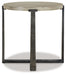 Details Made of oak veneer and engineered wood, Tabletop with warm gray finish, Distressed sand-casted aluminum base with antiqued pewter-tone finish, Assembly required