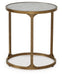 | Details | Made with tubular steel frame, Durable powder coat finish with antiqued goldtone texture, Inset tempered glass top with faux marble finish | |