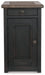 | Details | Made of solid and engineered wood and veneers, Dark bronze-tone hardware, 1 door; 1 fixed shelf, Pull-out tray with 2 cup holders, AC power supply with 2 USB charging ports, Assembly required | |