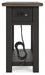 | Details | Made of wood, white oak veneers and engineered wood, Weathered grayish brown top, Textured wire brushed base in a black rub-through finish, Chairside end table features plank-styled top, Smooth-gliding drawer perfect for holding remotes and more, Integrated 110V power supply with dual USB charging ports, Black faceted hardware, Assembly required | |