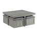 The Uster 2PC Occasional Set is the perfect living room set for casual entertaining. The set includes a coffee table, four stools, and an end table. The set is constructed in solid woods, 3D paper, and finished in a weathered grey. The stools can be used as a foot rest, additional storage, or extra seating for guest. The Uster Coffee Table with Four Storage Stools features functionality and design. The end table is set on a x-shaped base. The contemporary design of the Uster 2PC Occasional Set makes it easy to pair with other furnishings in your home.