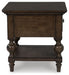 | Details | Made with hardwood solids, oak veneer and MDF substrate, Rich brown walnut finish with wood grain texture, Round metal knobs with antiqued bronze-tone finish, Drawer with fully finished interior, dovetail construction and ball-bearing side glides, Lower shelf, Assembly required | |
