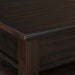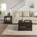 Define your living space with the Wagner Occasional Table Set elegant design. Made with solid wood and a cherry veneer, this collection demonstrates the appeal of traditional style. Detailed elements like bun feet and decorative molding add touches of elegance, while drawers with skillful dovetail construction and ball bearing glides mark superior craftsmanship. The open shelves extend staging area, perfectly complementing the coffee table spacious lift-top, and the coffee table casters ease movement when repositioning this piece throughout your home. For an effortless addition of refinement to your living space, the Wagner Occasional Table Set delivers.