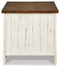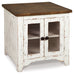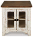| Details | Made of veneers, wood and engineered wood, Distressed finish; vintage white and aged natural pine color, Double door cabinet with metal grills and hardware, Center shelf, Assembly required | |