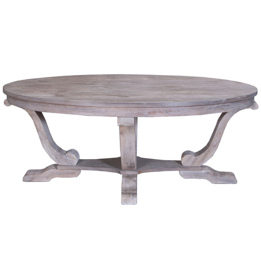 Salvaged stone white wash finish with wire brushing creates a casual, refined appeal when combined with a traditional silhouette. Oval shaped cockt...