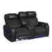 Prime Time - P3 Loveseat With LED, Wireless Charger Pocket, And Console - Jett Black With Red Stitching