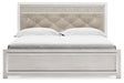 | Details | Includes upholstered panel headboard, panel footboard, platform rails and roll slats, Made with engineered wood (MDF/particleboard) and decorative laminate, Light finish with subtle pearl effect over replicated cedar grain with authentic touch, Gray polyester upholstery with faux crystal button tufting, Large scale chrome-tone handles with mosaic details, Glitter panel inset bookshelf, Faceted chrome-tone accents, 2 smooth-gliding drawers in footboard, LED light strip with remote-controlled color and brightness options, Power cord included; UL Listed, Bed does not require additional foundation/box spring; accommodates most zero clearance adjustable bases with the addition of a bunkie board, Mattress available, sold separately, Assembly required | |