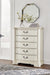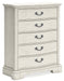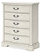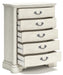 | Details | Made with hardwood solids, spruce veneer, MDF substrates and cast resin components, Antiqued white painted finish, 5 drawers with fully finished interiors, French and English dovetail construction and ball-bearing side glides, Metal bar pulls with aged pewter-tone finish | |