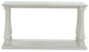 | Details | Made with hardwood solids, elm veneer, MDF substrates and cast resin, Antiqued white finish, 4 cast resin baluster legs, Open lower shelf, Assembly required | |