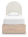 | Details | Includes upholstered panel headboard, panel footboard, roll slats and 2 under bed storage units, Made with engineered wood (MDF/particleboard/plywood) and decorative laminate for the right balance of affordability and durability , Smooth, light finish with replicated oak grain, Decorative laminate replicates natural or man-made material surfaces with consistent color, pattern and texture , Polyester upholstery , Knobs with black finish, 4 smooth-gliding storage drawers, 4 open cubbies accommodate 10.5"W x 10.5"D x 11"H cube storage bins, Drawer interiors are lined with a faux linen laminate for a clean, finished look, Bed does not require additional foundation/box spring; accommodates most zero clearance adjustable bases with the addition of a bunkie board , Mattress available, sold separately, Assembly required | |