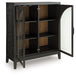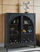 | Details | Made with oak veneer, hardwood solids and engineered wood, Black and natural brown finish, Door pulls with black finish, 2 doors with arched glass inserts, 2 rows of wine bottle racks, 3 wine glass racks, 4 adjustable shelves, Minor assembly required, simply attach drawer pulls and legs | |