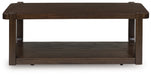 | Details | Made with hardwood solids, oak veneer and MDF substrate, Dark brown wood-tone finish with rich dark grain contrast, Lower shelf, Casters for easy mobility | |