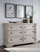 | Details | Made with hardwood solids, oak and ash swirl veneers, MDF substrates and cast resin components, Antiqued white finish, Hardware with antiqued bronze-tone finish, 6 smooth-gliding drawers with fully finished interiors, English dovetail construction and heavy-duty ball-bearing side glides (top drawers felt lined) | |