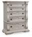 | Details | Made with hardwood solids, oak and ash swirl veneers, MDF substrates and cast resin components, Antiqued white finish, Hardware with antiqued bronze-tone finish, 5 smooth-gliding drawers with fully finished interiors, English dovetail construction and heavy-duty ball-bearing side glides (top drawer felt lined) | |