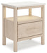 | Details | Made with engineered wood (MDF/particleboard/plywood) for the right balance of affordability and durability, Smooth, light finish with replicated oak grain, Replicated marble top, Handle with champagne colored finish, Storage cubby, Smooth-gliding drawer, Drawer interior is lined with a faux linen laminate for a clean, finished look, Round post legs, Built-in ambient lighting under top, USB-C and wireless charging options, Power cord included; UL Listed, Minor assembly required | |
