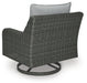 | Details | Rust-proof aluminum frame, All-weather resin wicker, 360-degree swivel, Powdercoated steel support under the seat, Stainless steel hardware, Easy-clean polyester (Nuvella®) fabric remains vibrant and resists stains, All-weather foam cushion core wrapped in soft polyester, Clean fabric with mild soap and water, let air dry; for stubborn stains, use a solution of 4 oz. bleach to 28 oz. water, Imported fabric and fill, Assembly required | |
