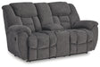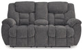 | Details | Pull tab reclining motion, Corner-blocked frame with metal reinforced seat, Attached back and seat cushions, High-quality foam cushions wrapped in poly fiber, Polyester upholstery, Next-Gen Nuvella is a performance fabric that is soft, easy to clean, stain-resistant and durable, Clean fabric with mild soap and water, let air dry; for stubborn stains, use a solution of 4 oz. bleach to 28 oz. water, Center console with 2 cup holders and hidden storage | |